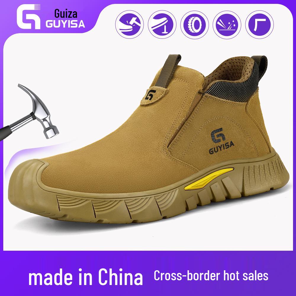 Men's Four-Season Safety Work Shoes: Anti-Smash, Anti-Puncture, Suede, Fireproof, Slip-Resistant, Wear-Resistant.