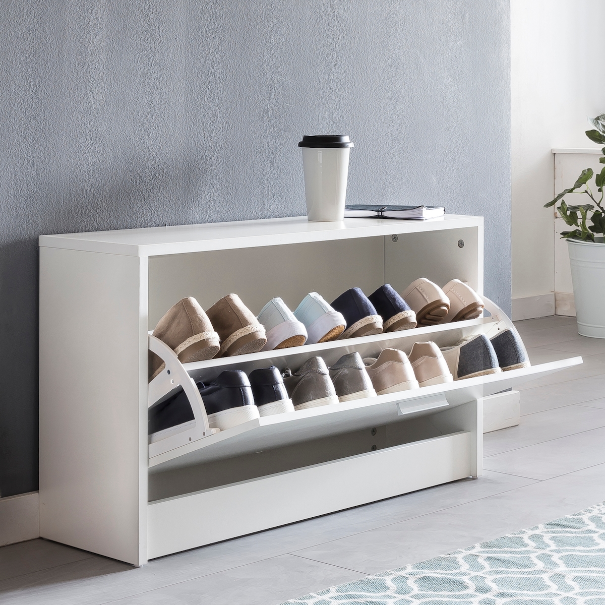 Flurbank in Weiß Ablagen