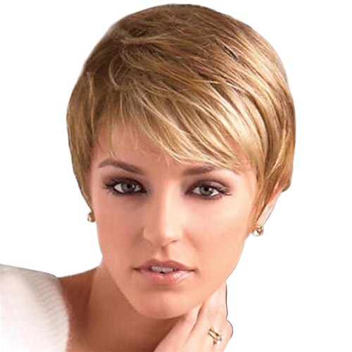 parrucche bionde corte per donne bianche, parrucche da folletto per donne nere, parrucche corte a strati per donne anziane sintetiche