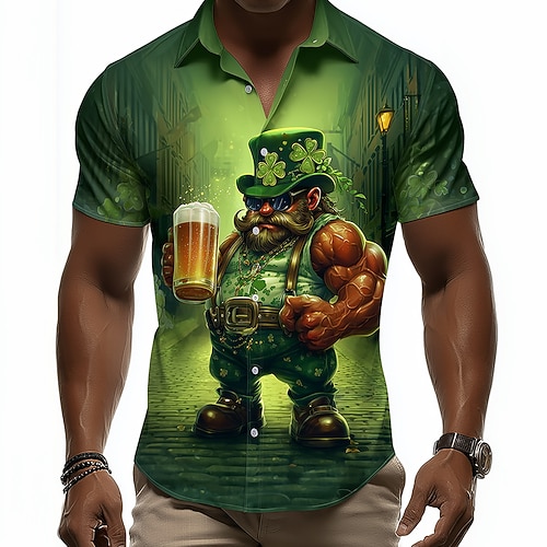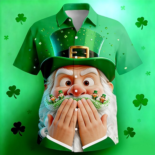 Festa di San Patrizio Per uomo Trifoglio Divertente folletto Camicia Camicia con Bottoni Manica Corta Moda Casual Feste Ferie Estate Primavera Collo ripiegato Stampa 3D camicie con colletto verde 1