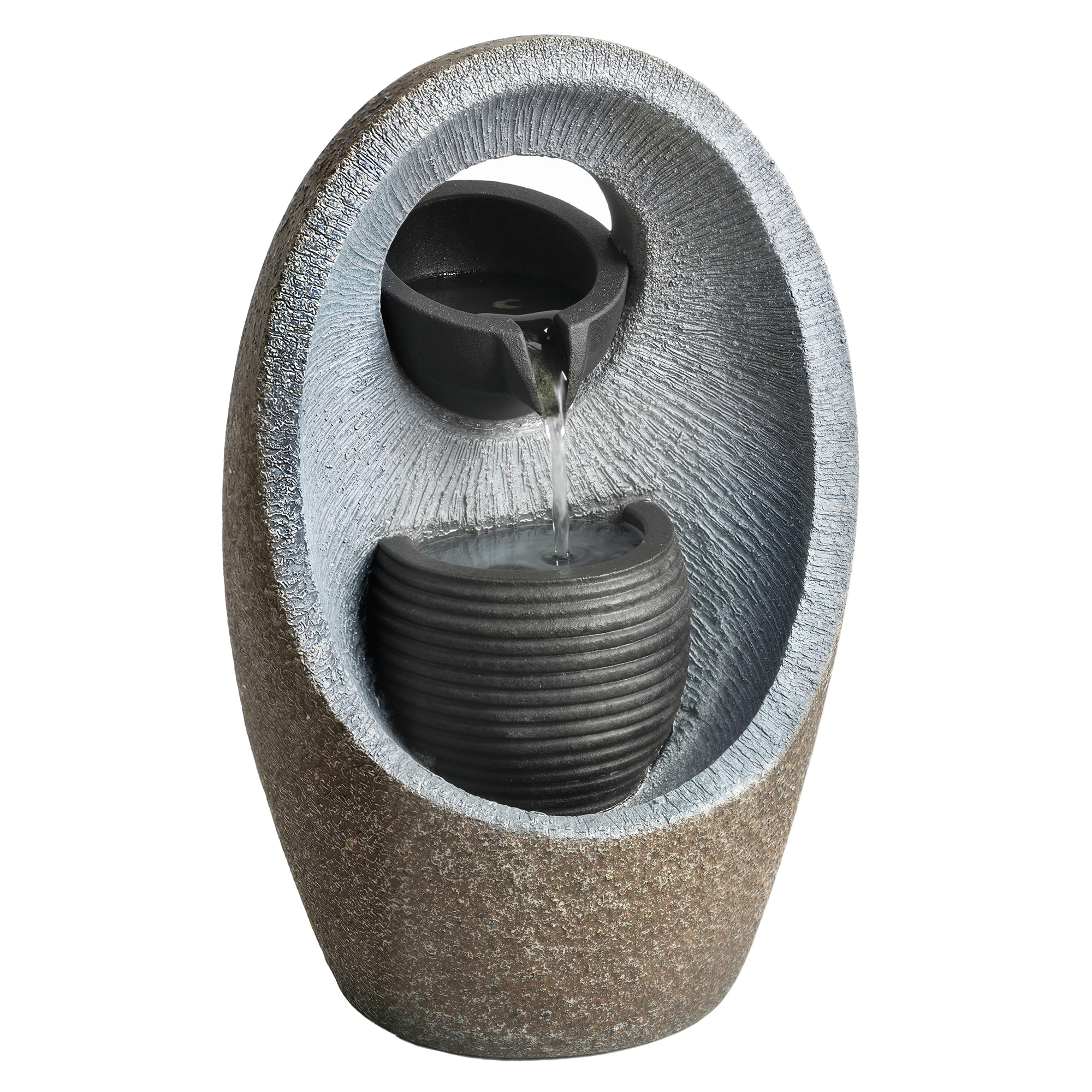 Outsunny Water Feature with 2-Tier Bowls, Garden Water Fountain with Pump and LED Lights, Resin Cascading Waterfall