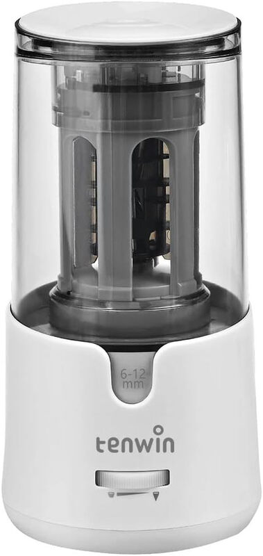 tenwin Electric Pencil Sharpener, AC Adapter Powered Sharpener with Container for 6-12mm Coloured Pencils, Auto Stop for Artists, Kids, Office, Classroom, School Use, Portable, Heavy Duty (White)