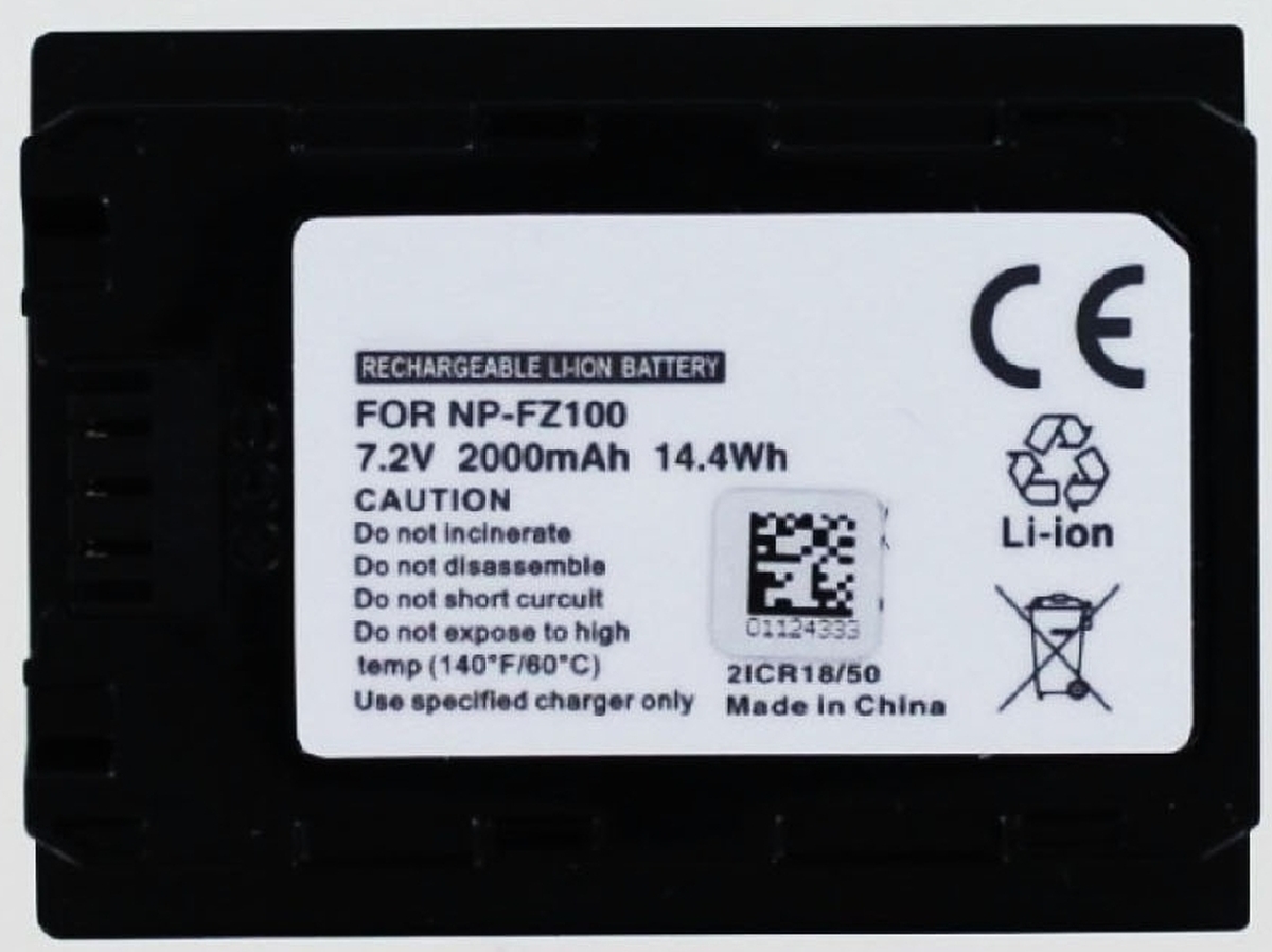 Kamera NP FZ100 Batteri- og Ladersett med 2-spors Batterilader + 2 stk NP FZ100 Batterier 7.2V 2300mAh + USB Svart