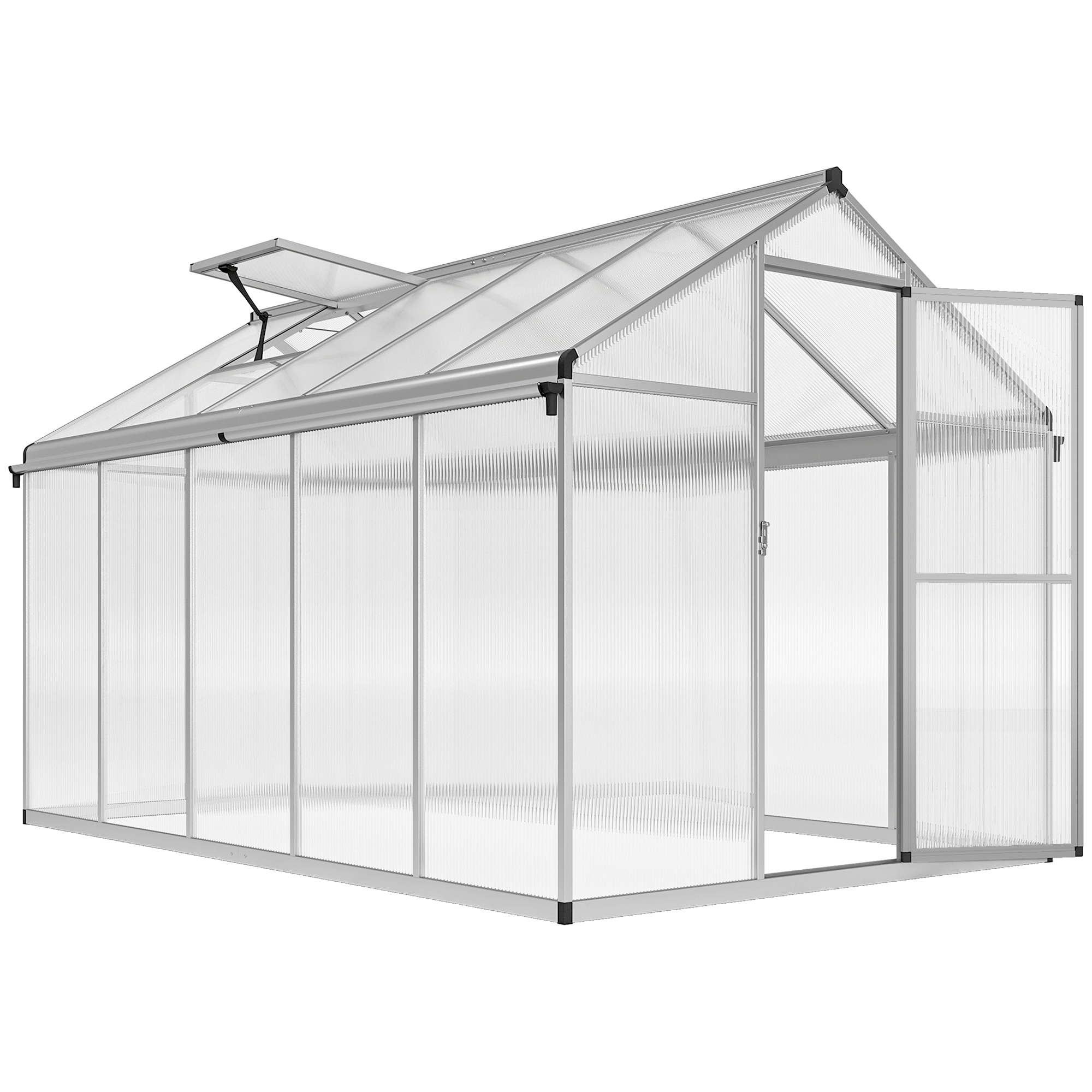 Outsunny 6 x 6ft Polycarbonate Greenhouse with Rain Gutters, Large Walk-In Green House with Window, Garden Plants Grow House with Aluminium | Aosom UK