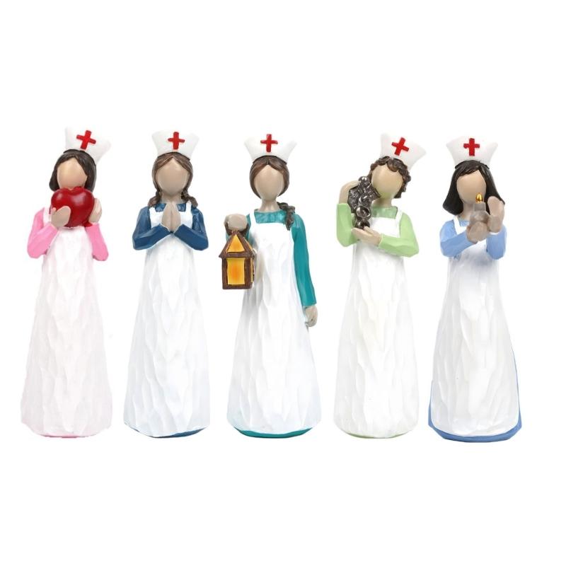 Harpiks Sykepleierfigur som Holder Lyslampe Hjerte Skulptur Thanksgiving Sykepleiernes Dag Gave Til Sykehusprofesjonell