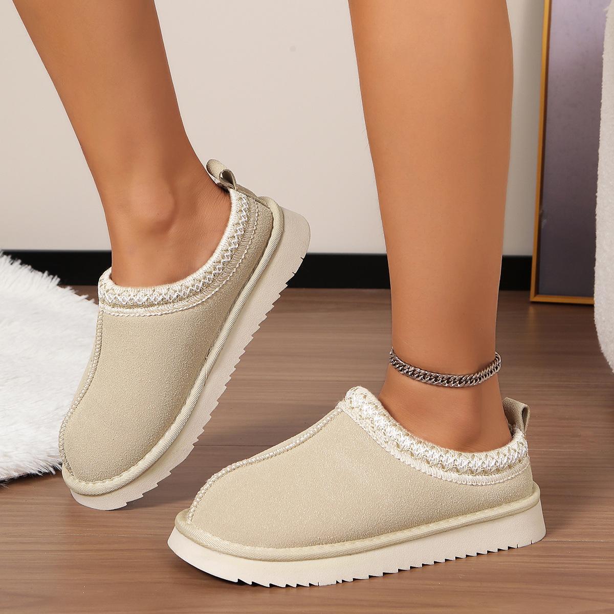 Berømte vind- og snøstøvler dame høst og vinter ny stor størrelse flat såle lav hæl late bomullstøfler cm Svart