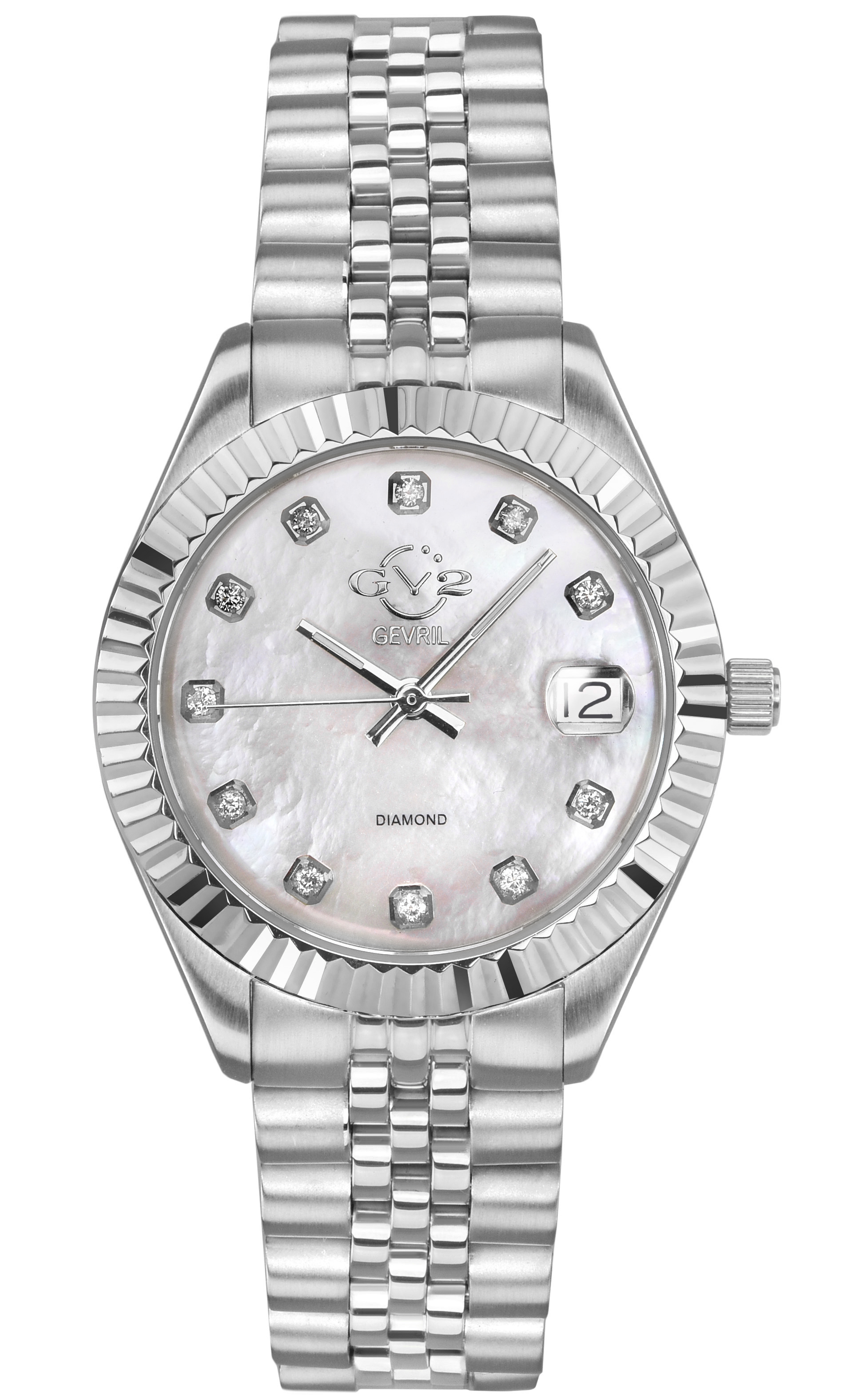Gevril Womens GV2 Florence 12518 Mother of Pearl Dial Diamond Swiss Quartz Watch - Silver - One Size | Gevril Sale | Discount Designer Brands