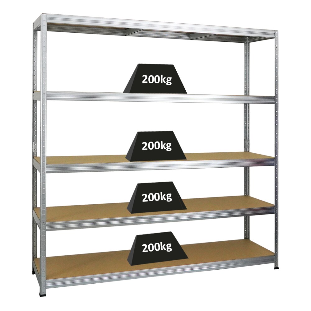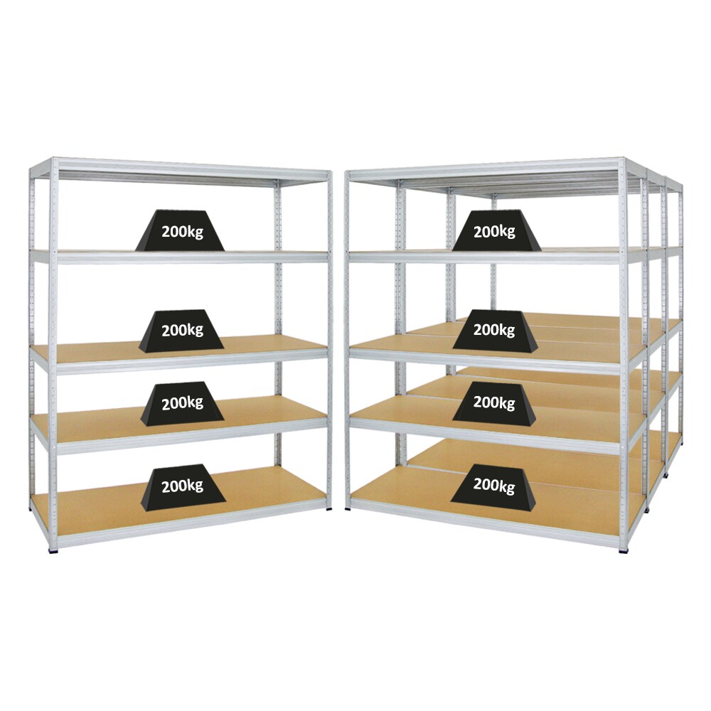 PROREGAL Mega Deal | 5x Schwerlastregal Giant Ragnar | HxBxT 200x100x50 cm | Fachlast 175kg | Verzinkt | Stecksystem Lagerregal Regalsystem 5 Stk.