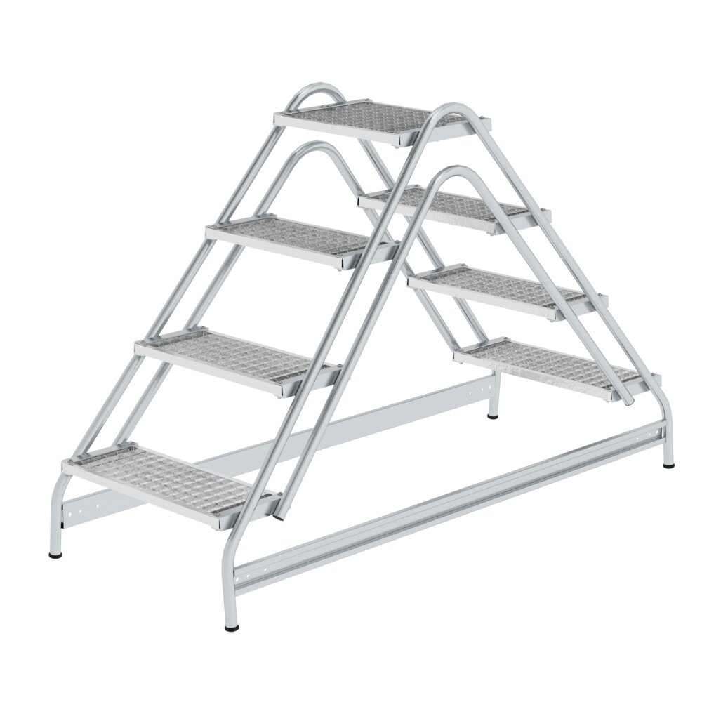 PROREGAL Arbeitspodest beidseitig begehbar | 2x4 Stufen | Stahl-Gitterrost | Rutschfeste Kunststoffschuhe