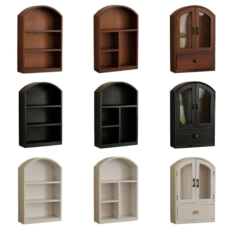 Wooden Desktop Display Cabinet With Tempered Glass Door Multifunctional Storage Organizers For Home Office Decors