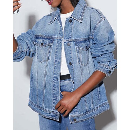 Per donna Giacca di jeans Esterno Regolabile Liscio Casual / quotidiano Moda Standard Capispalla Manica lunga Autunno Blu S