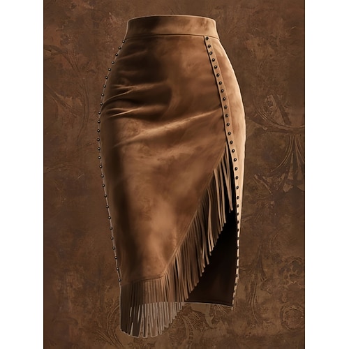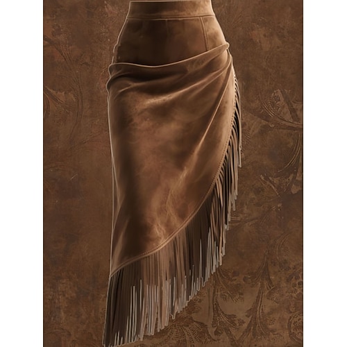 Per donna Gonna in finta pelle scamosciata Vintage Moda Casual Midi Vita media Gonne Semplice Frangia con nappe Inelastico Streetwear Uscire Marrone Estate Poliestere