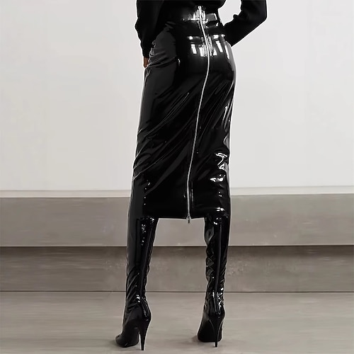 Gonna a tubino Finitura lucida Per donna A vita alta Effetto bagnato Effetto pelle verniciata Tinta unica Costume per Casuale Club Recital di danza Carnevale Adulti