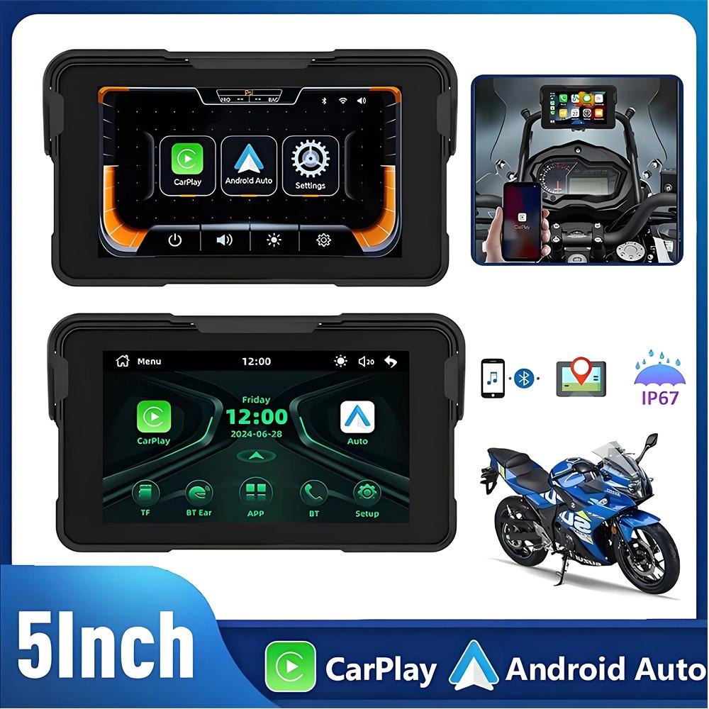 5 tommer Trådløs CarPlay Android Auto Bærbar Digital Motorsykkel Dashbord Dobbel Bluetooth GPS Navigasjonsskjerm Skjerm