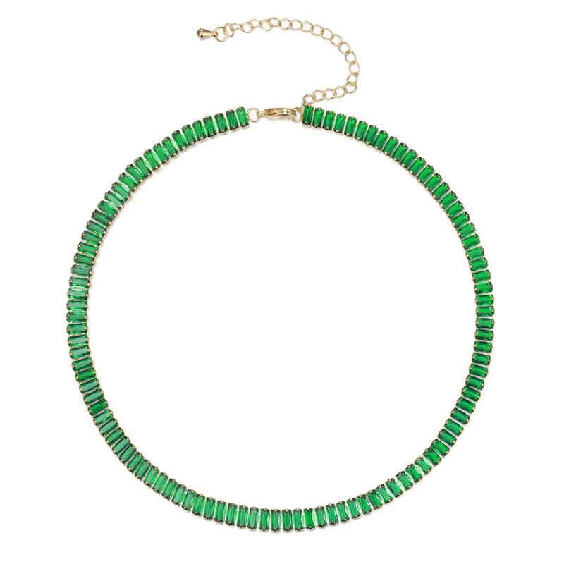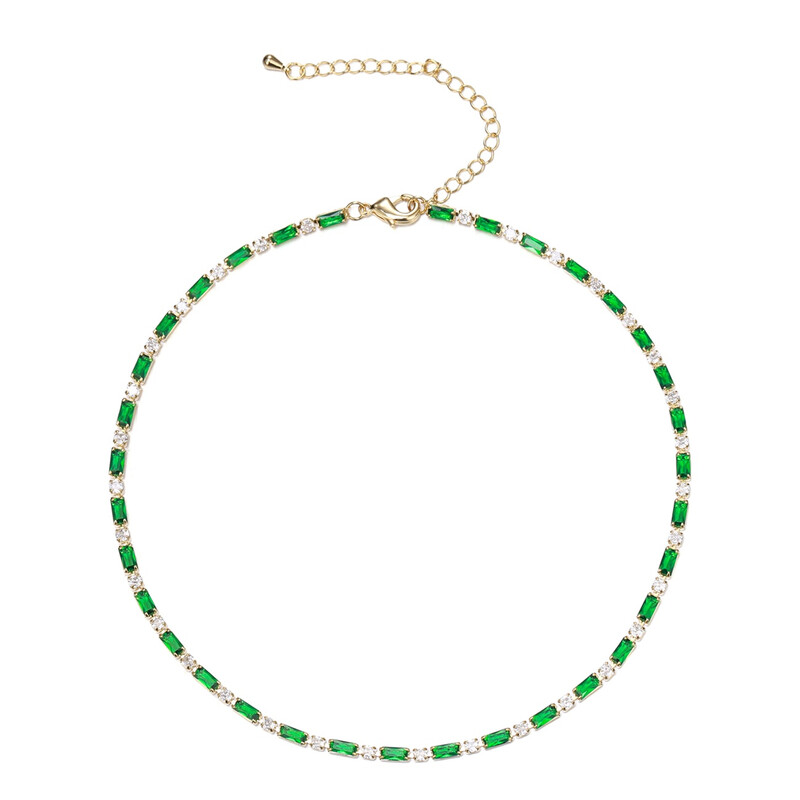 Ever Faith Green Cubic Zirconia Thin Tennis Choker Necklace
