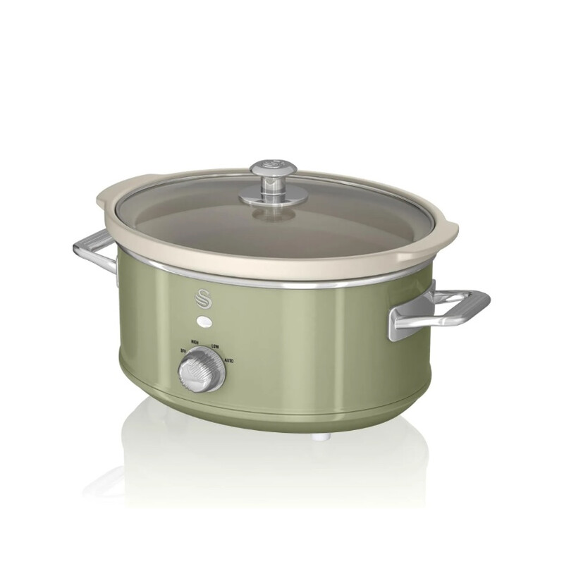 Swan Retro Slow Cooker - Green, 3.5L, 200W, with 3 Temperature Settings, Keep Warm Function, SF17021GN