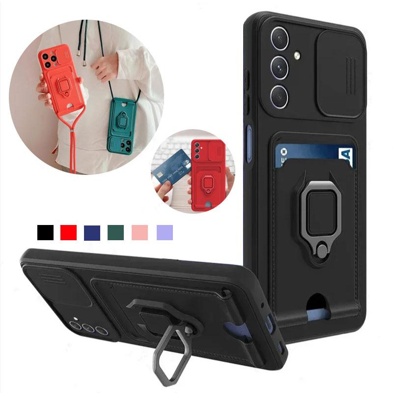 Crossbody Lanyard Soft Slide Lens Phone Case for Samsung Galaxy A56 A36 A26 A16 A06 A55 A35 A04 Wallet Card Slot Holder Cover green