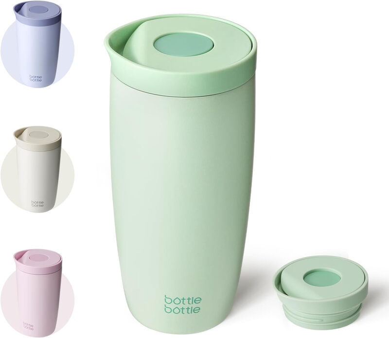 Bottle Bottle Thermal Mug 500 ml To Go - Premium Insulated Stainless Steel Mug, Leak-Proof, BPA-Free, Quick Press Closure, Double Walled, Keeps Drinks Hot & Cold for a Long Time (green)