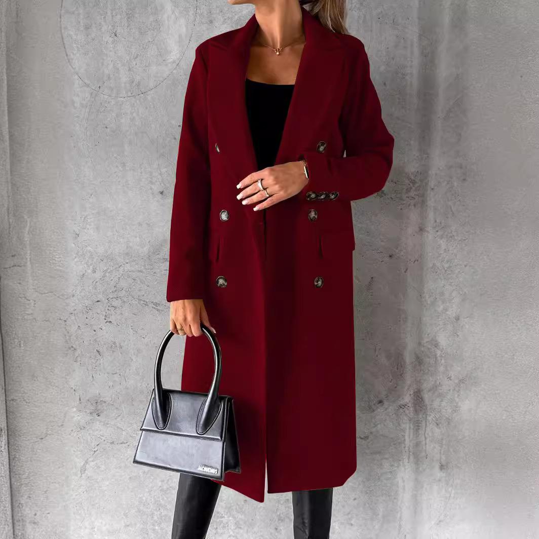 Women's Fashion Casual Solid Color Print Autumn Winter Long Sleeve POLO Neck Jackets & Coats cm light grey