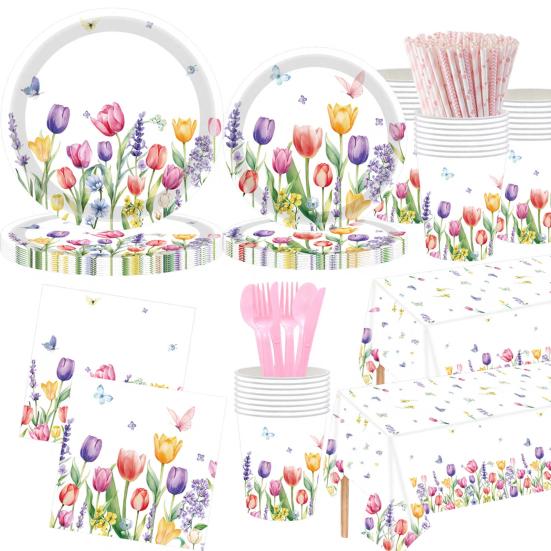 Watercolor Floral Tablecloth Round Tulip Wildflower Party Holiday Tablecloth Coffee Table Cover for Dining Table Picnic BBQ Party Decoration