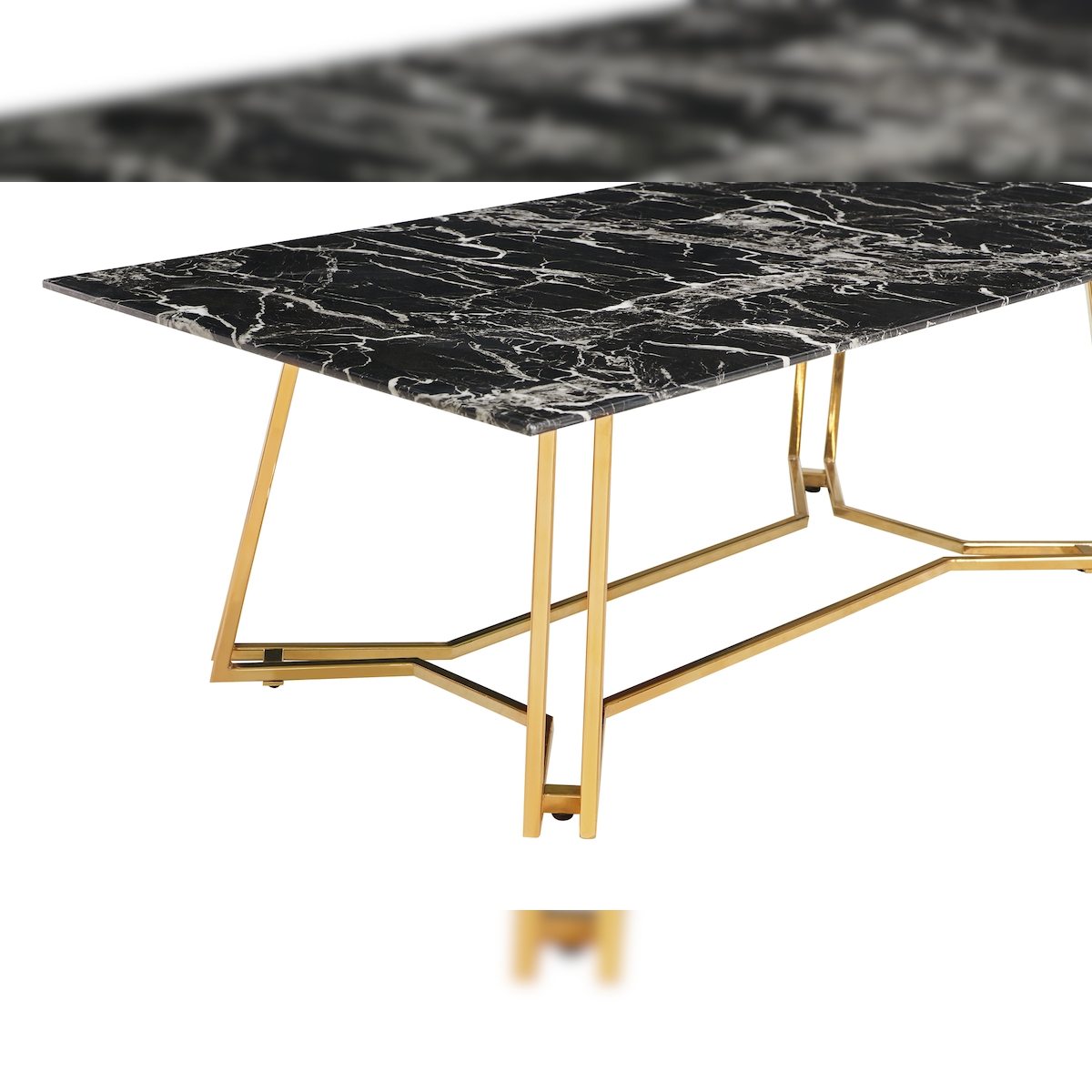 SalesFever Couchtisch 110 x 60 cm | Tischplatte Glas Marmor-Optik | Gestell Metall | B 110 x T 60 x H 40 cm | schwarz – goldfarben