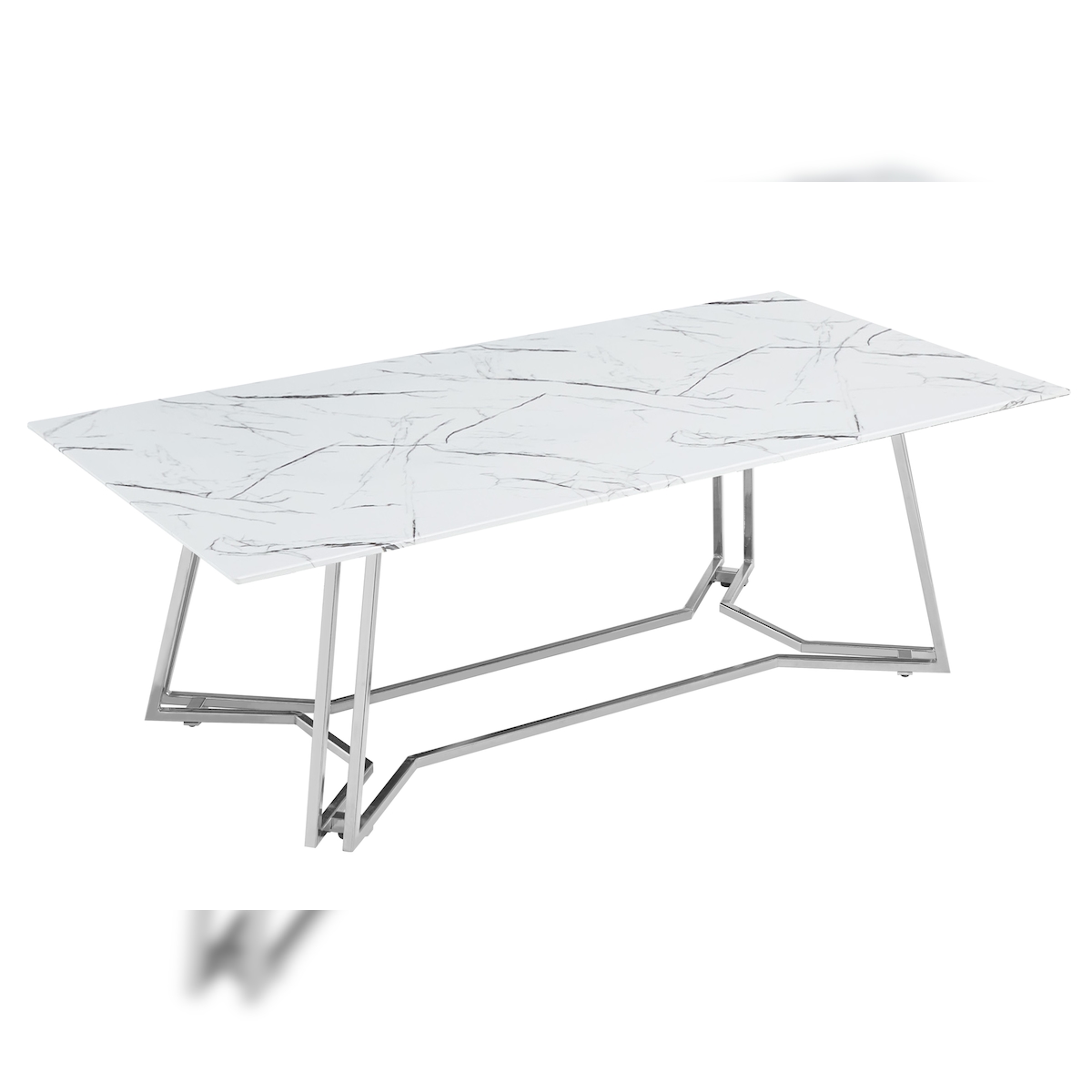 SalesFever Couchtisch 110 x 60 cm | Tischplatte Glas Marmor-Optik | Gestell Metall | B 110 x T 60 x H 40 cm | weiß – chromfarben