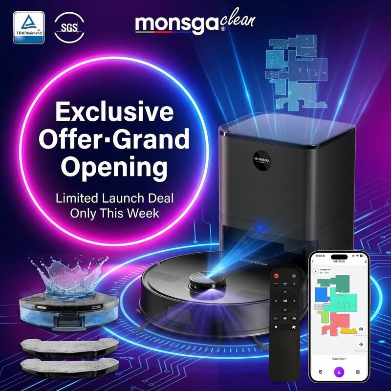 monsga MS1 Max Robot Vacuum and Mop Combo, 5000Pa Robotic Vacuum with 3.5L Self Emptying Station, Lidar Navigation Robot Vacuum Cleaner, 180mins Runtime, APP/Remote/Voice Control, for Hard Floors and Carpets