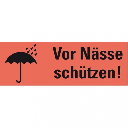 Dreifke® Hinweisetikett Vor Nässe schützen, leuchtrot, Haftpapier, perm., 147x50mm, 250/RO