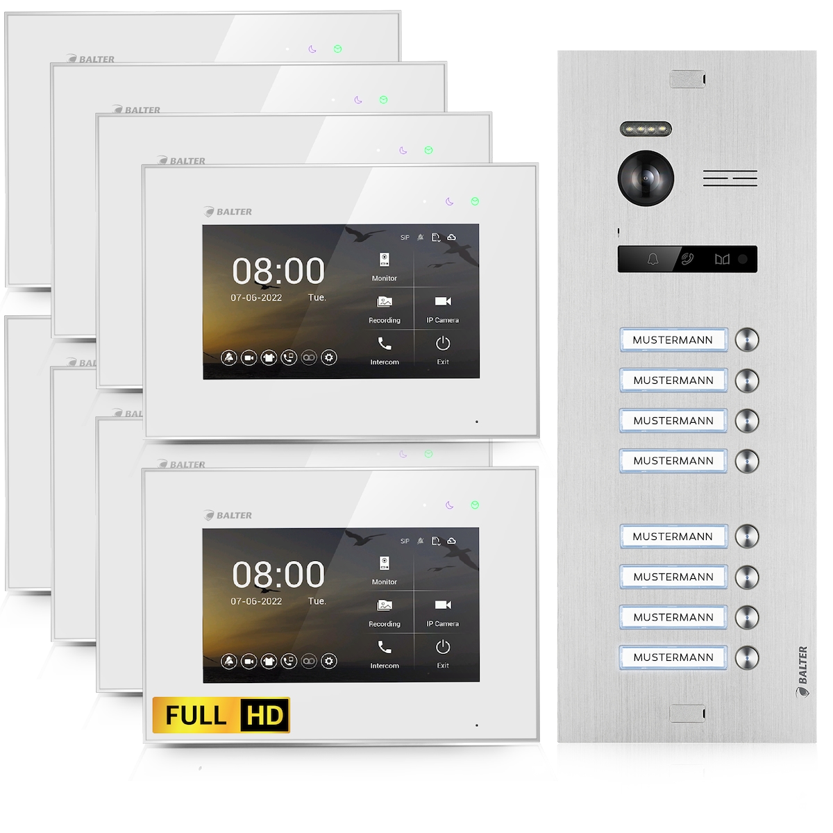 HD Video Türsprechanlage für 8 Familienhaus, 8x Monitor, Balter EVO HD
