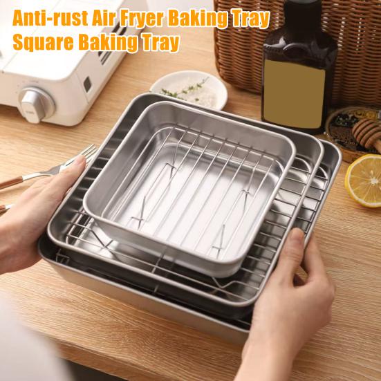 Heißluftfritteusen-Rost Edelstahl Grillrost Rostfrei Wiederverwendbare Backbleche für Heißluftfritteusen-Ofen Heimküchen-Gadgets