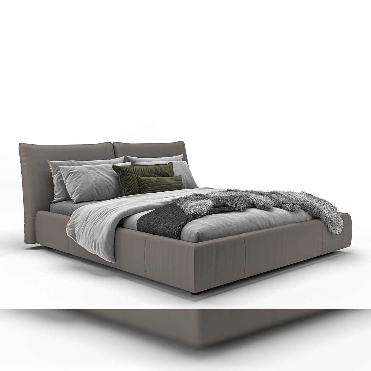 KAWOLA Bett HENRY Polsterbett Leder hellgrau 140x200cm