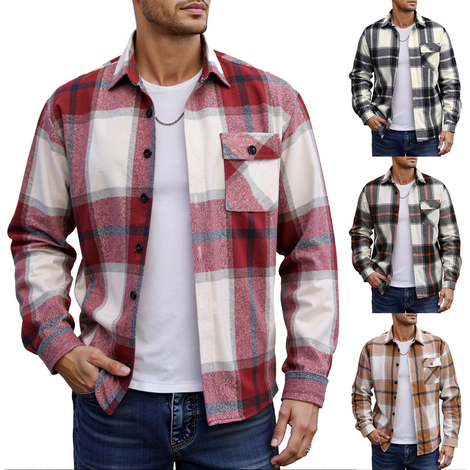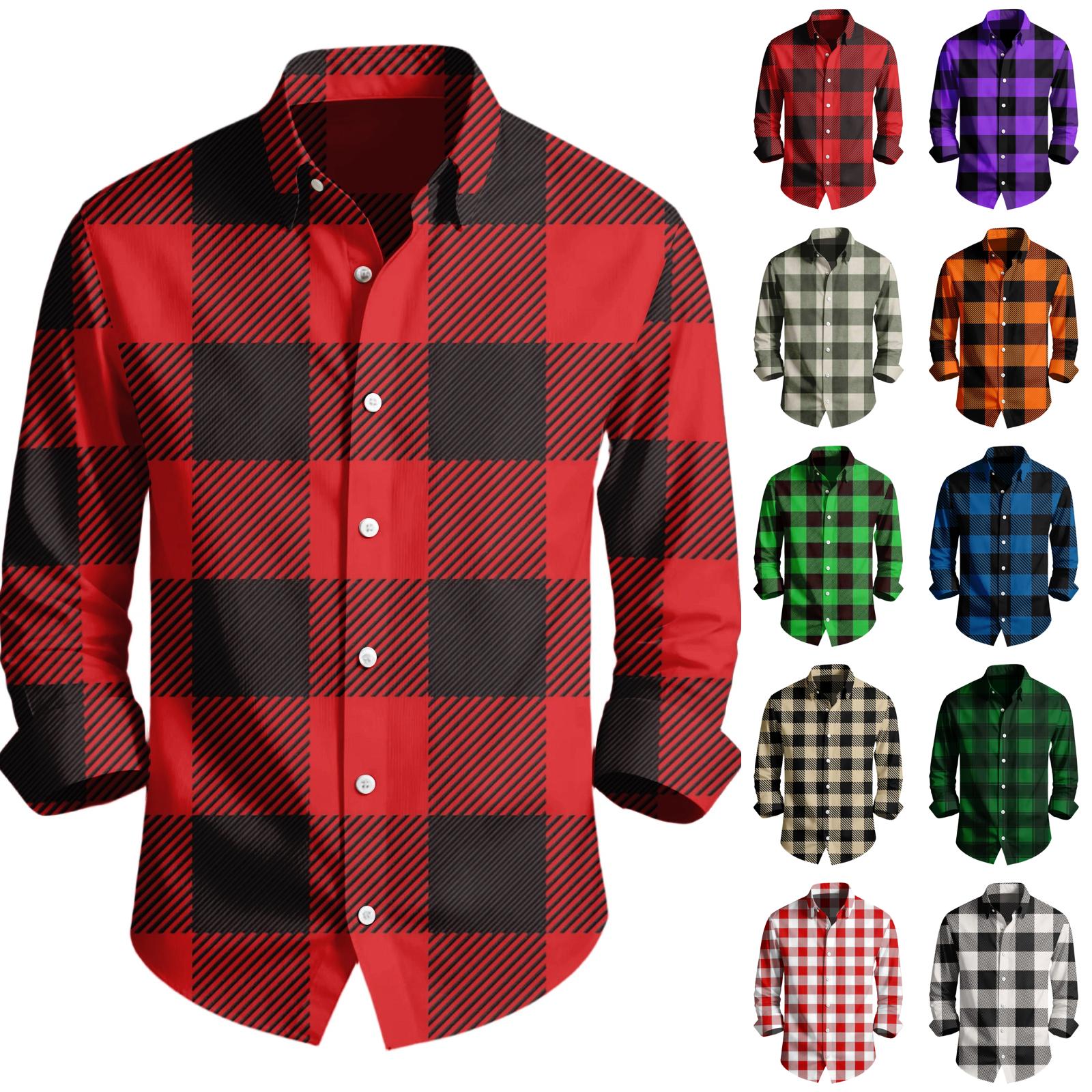 Herr Casual Långärmad Revers Flanell Rutig Knappskjorta cm saffran