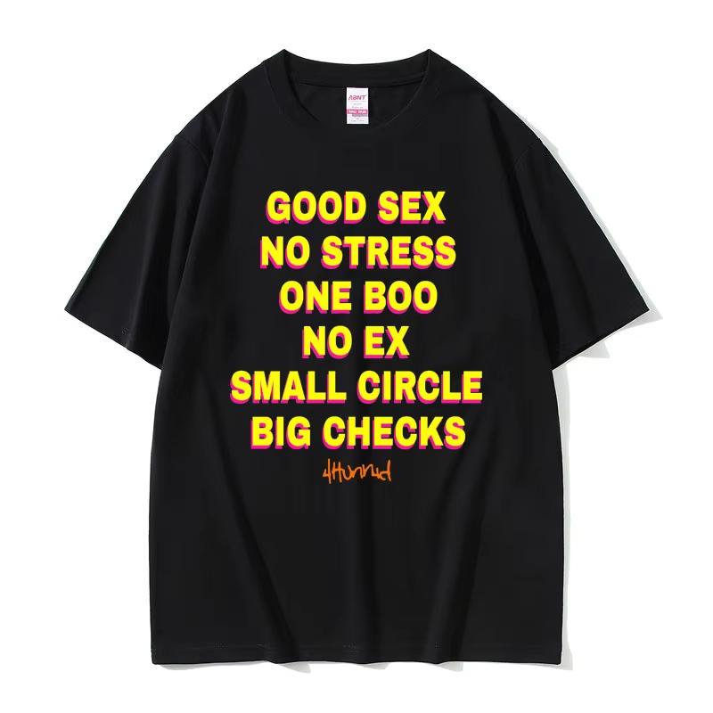 Funny Good Sex No Stress One Boo No Ex Small Circle Big Checks T Shirts Men Women Casual Loose y2k Tees Male Hip Hop T-shirts cm