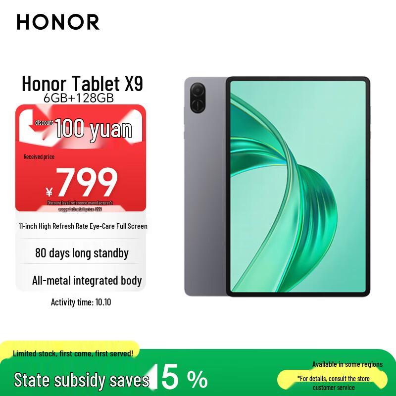 HONOR Tablet "Pad X9a 6GB + 128GB", Energieeffizienz: F (A-G), grau (space grau), 128 GB, Tablets_EBookReader