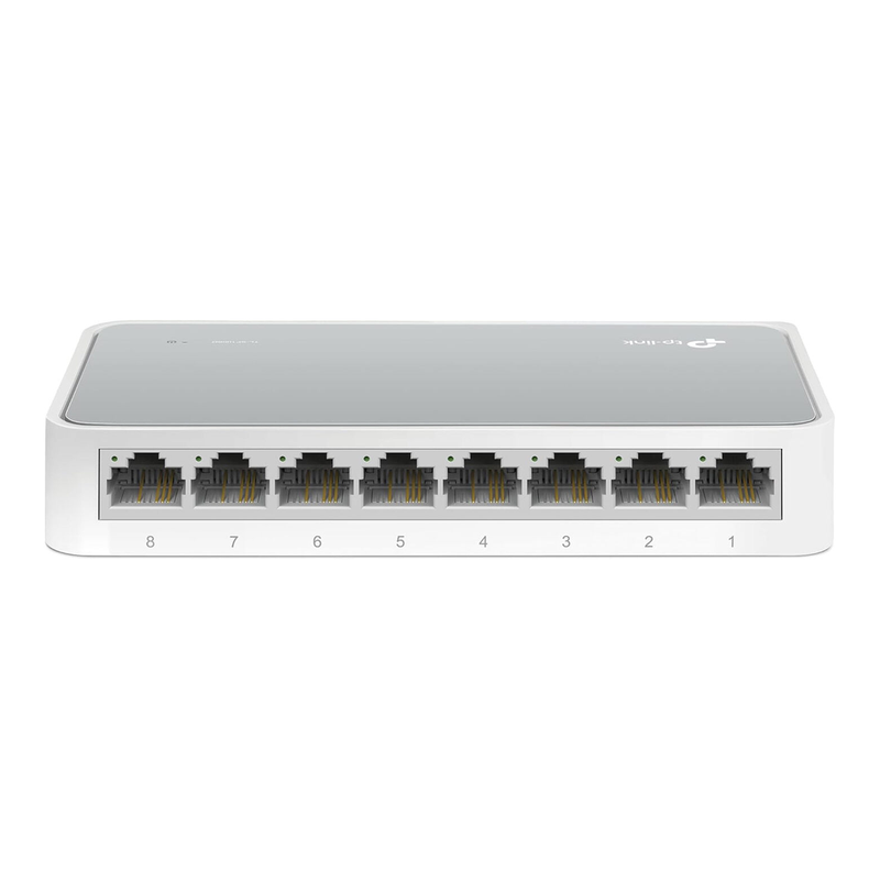 TP-Link TL-SF1008D 8-Port 10/100 Mbit/s Unmanaged Fast Ethernet Switch, Desktop-Splitter/Hub, Plug & Play, Lüfterlos und Leise, Desktop-Design, Grüne Technologie