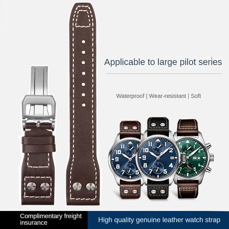 20mm 21mm 22mm Klokkereim For IWC Pilot Spitfire Princekin Mark dermis Svart Brun Kuskinn Armbånd Foldespenne Klokkereim