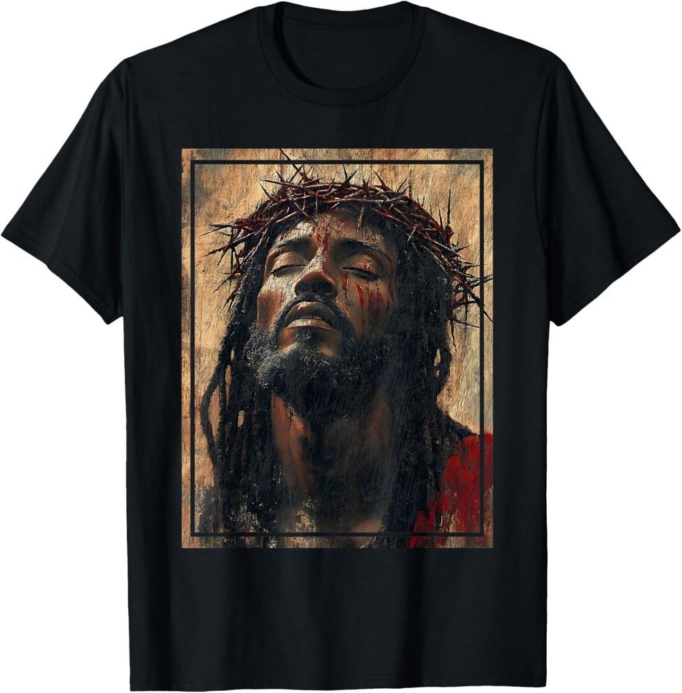 Black Jesus Face Of Jesus Cross With Crown Of Thorns T-Shirt unisex T-Shirt cm