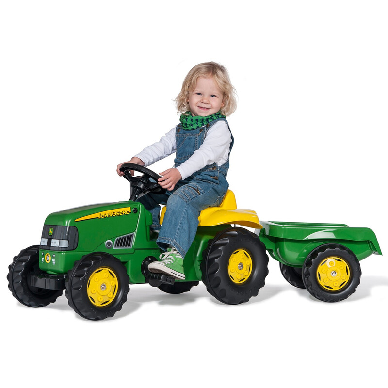 Rolly John Deere Trio Ride On Tractor with Sound & Trailer, Electronic Steering Wheel