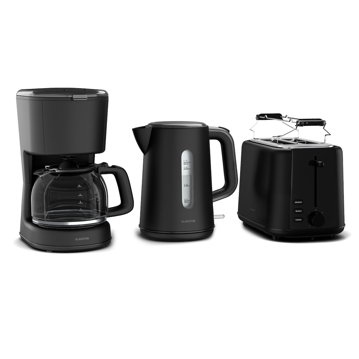 Velaire Frühstücksset | Toaster, Wasserkocher & Kaffeemaschine | 800 W | 10 Tassen | 1,7 l Schwarz Klarstein