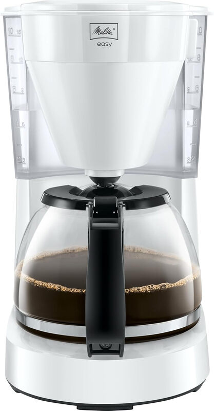 Melitta Easy Tropf-Kaffeemaschine mit Glaskanne, Tropf-Stopp, 10 Tassen, Weiß