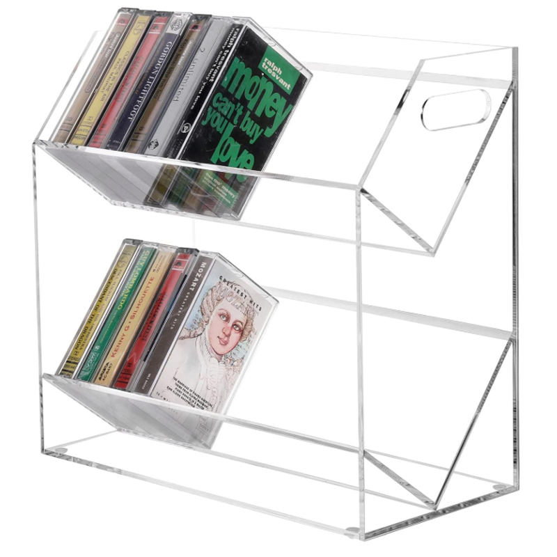 MyGift Klarer Acryl-Kassettenhalter, 2-stufiges Retro-Audiokassetten-Deck-Aufbewahrungsdisplay mit Ausschnittgriffen