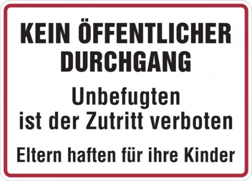 Schild I Hinweisschild Kein öffentlicher Durchgang! Unbefugten..., Kunststoff, 400x300mm