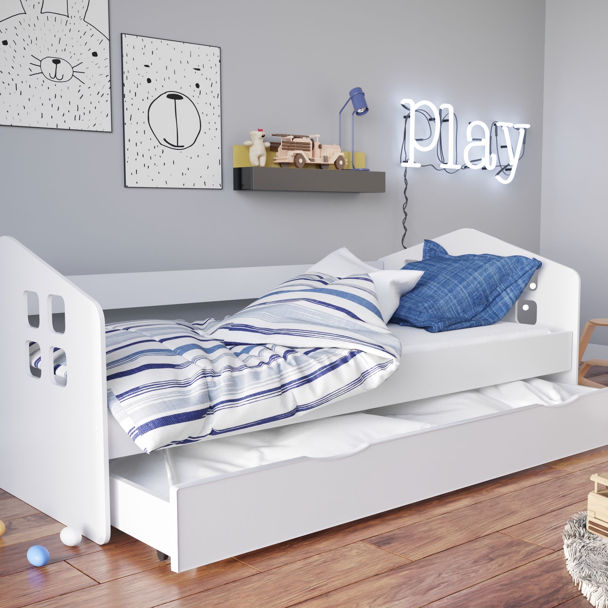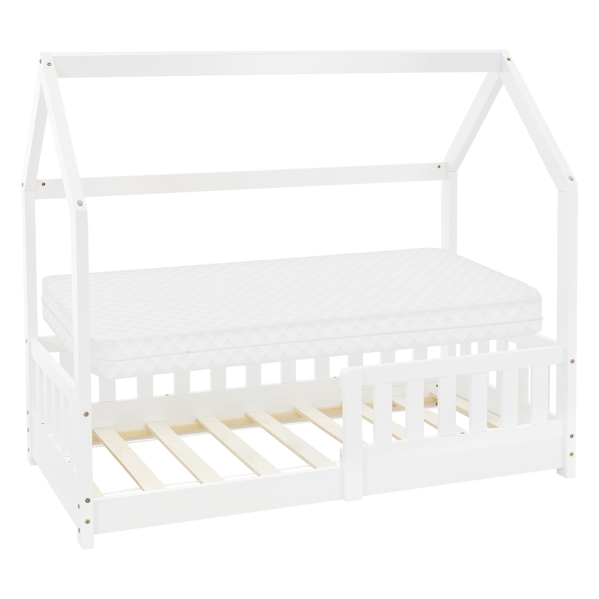 Kinderbett HOME AFFAIRE "ECO One, Einzelbett, skandinavisches Design", grün, B:166cm H:46,5cm L:760cm, Matratzenbezug: 100% Baumwolle, Betten, Kinderbett, wahlweise mit Matratze, Liegefläche 70x160 cm grün Liegefläche Länge B: 70cm x 160cm, Baumwolle Kalt