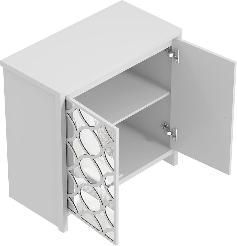 Galano Iris 2 Door Sideboard – Storage Cabinet for Living Room & Kitchen – Space Saving Side Unit with Arylic Mirror Doors, Modern Side Board Organizer - White