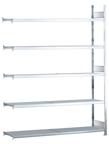 SCHULTE Lagertechnik Anbauregal, Weitspannregal WS 2000 mit Stahlböden, 3000 x 2000 x 800 mm (HxBxT), verzinkt, 5 Ebenen, Fachlast 400 kg, Feldlast 2.000 kg