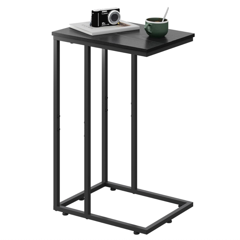 WLIVE Side Table C Shape, Bedside Table for Bedroom, Living Room, Side Tables with Metal Frame, Living Room Table for Couch, Sofa Table,Black