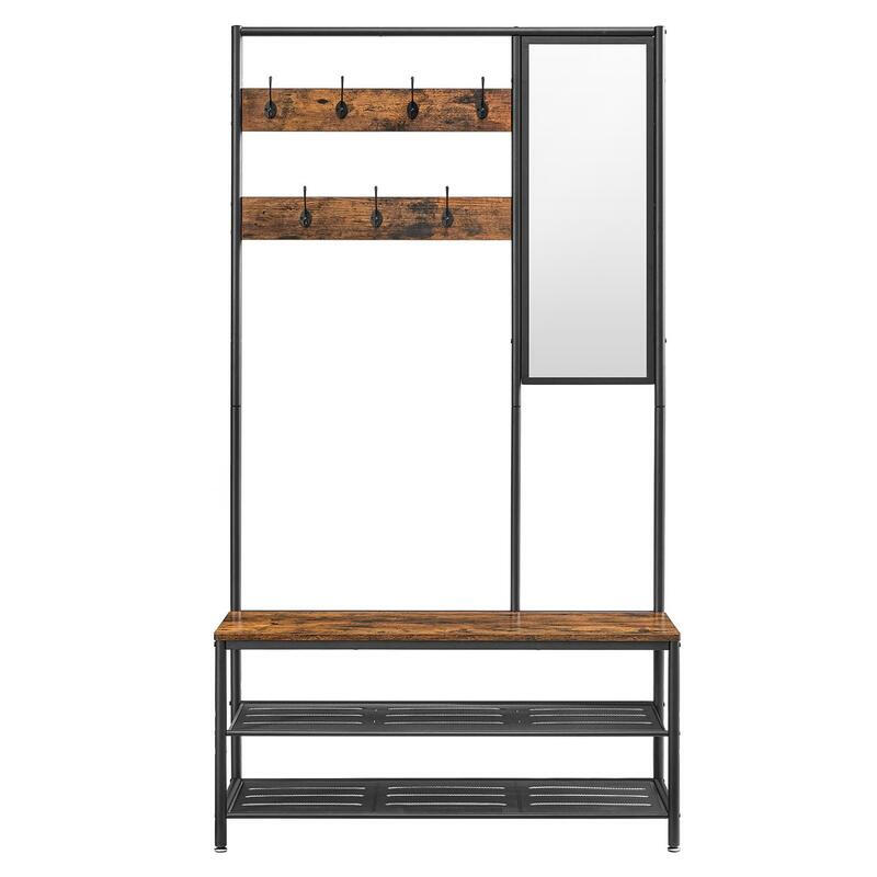 VASAGLE Hallway Coat Rack Bench Mirror 2 Shoe/Boot Shelves Rustic Brown/Black