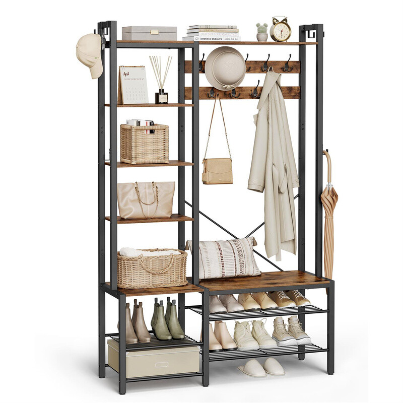 VASAGLE Hallway Coat Rack Bench 4 Shoe Shelves & 4 Shelves Rustic Brown/Black