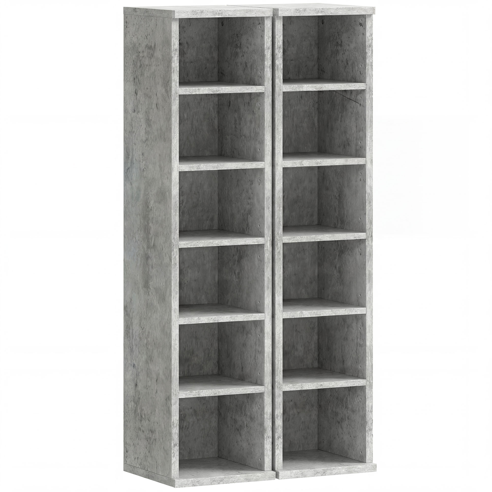 HOMCOM Set of 2 CD Media Display Shelf Unit Tower Rack with Adjustable Shelves, Grey