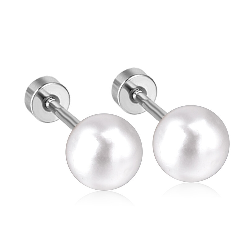Large White Pearl Screw Back Earrings - 7/8mm Stainless Steel Silver Tone Studs, Hypoallergenic Everyday Jewelry